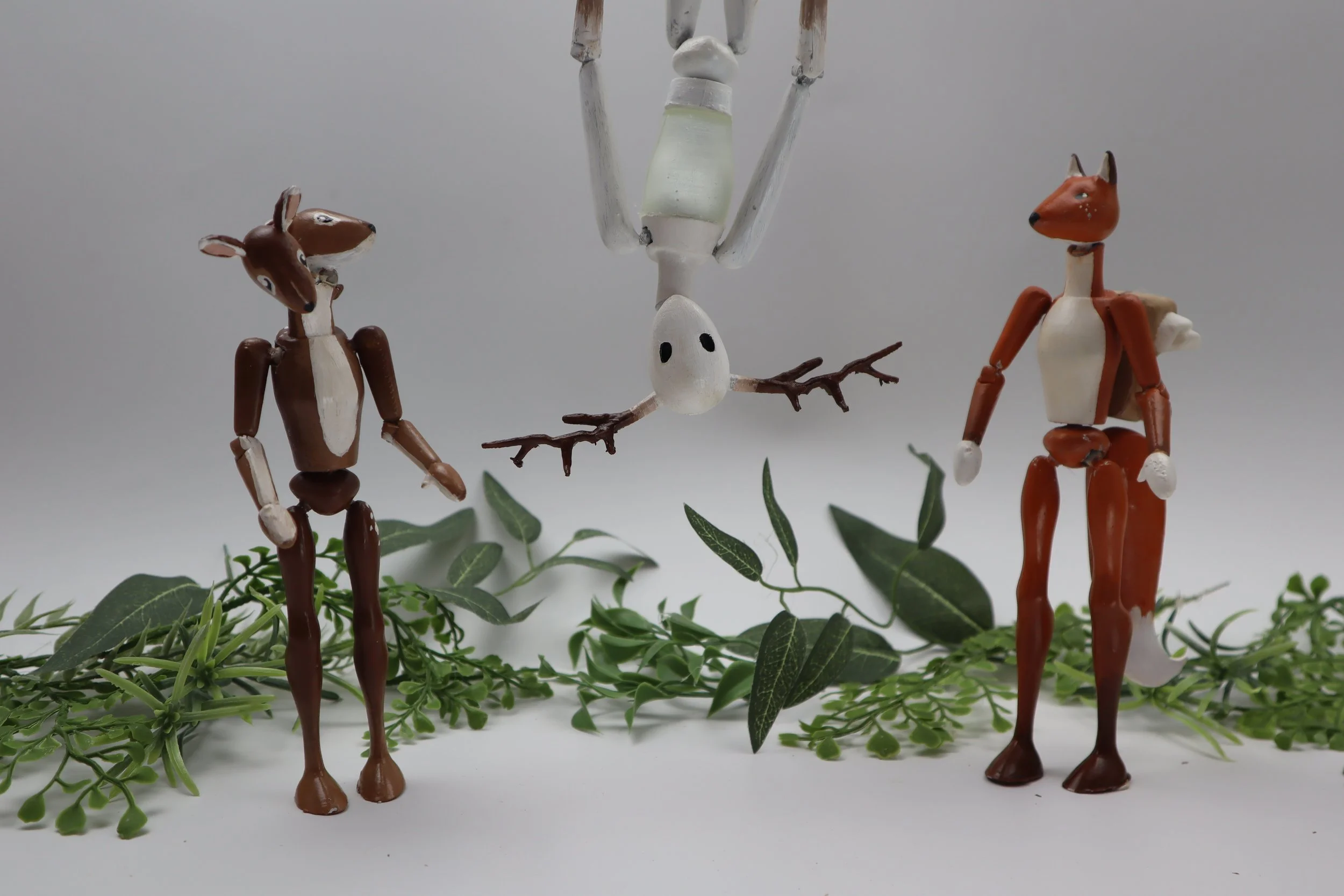A set of three mystical, otherworldly 3D-printed action figures.