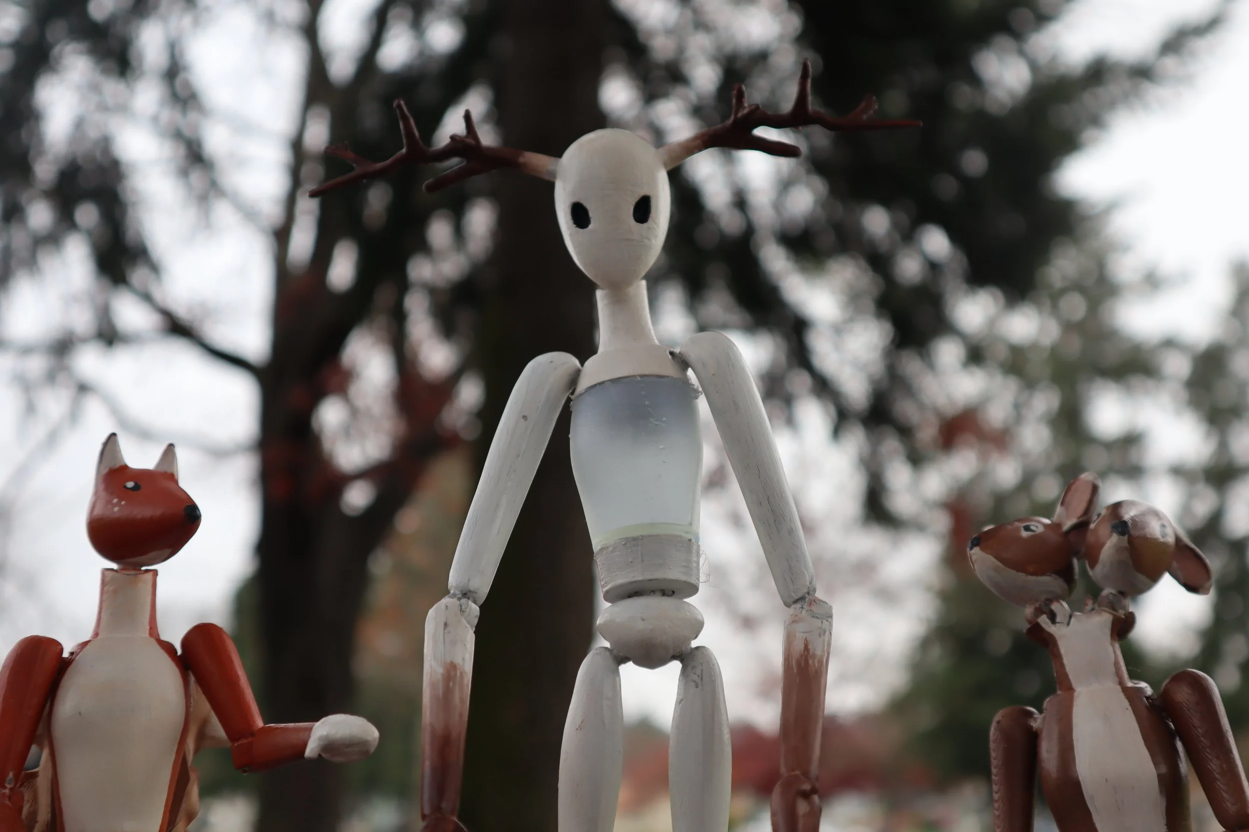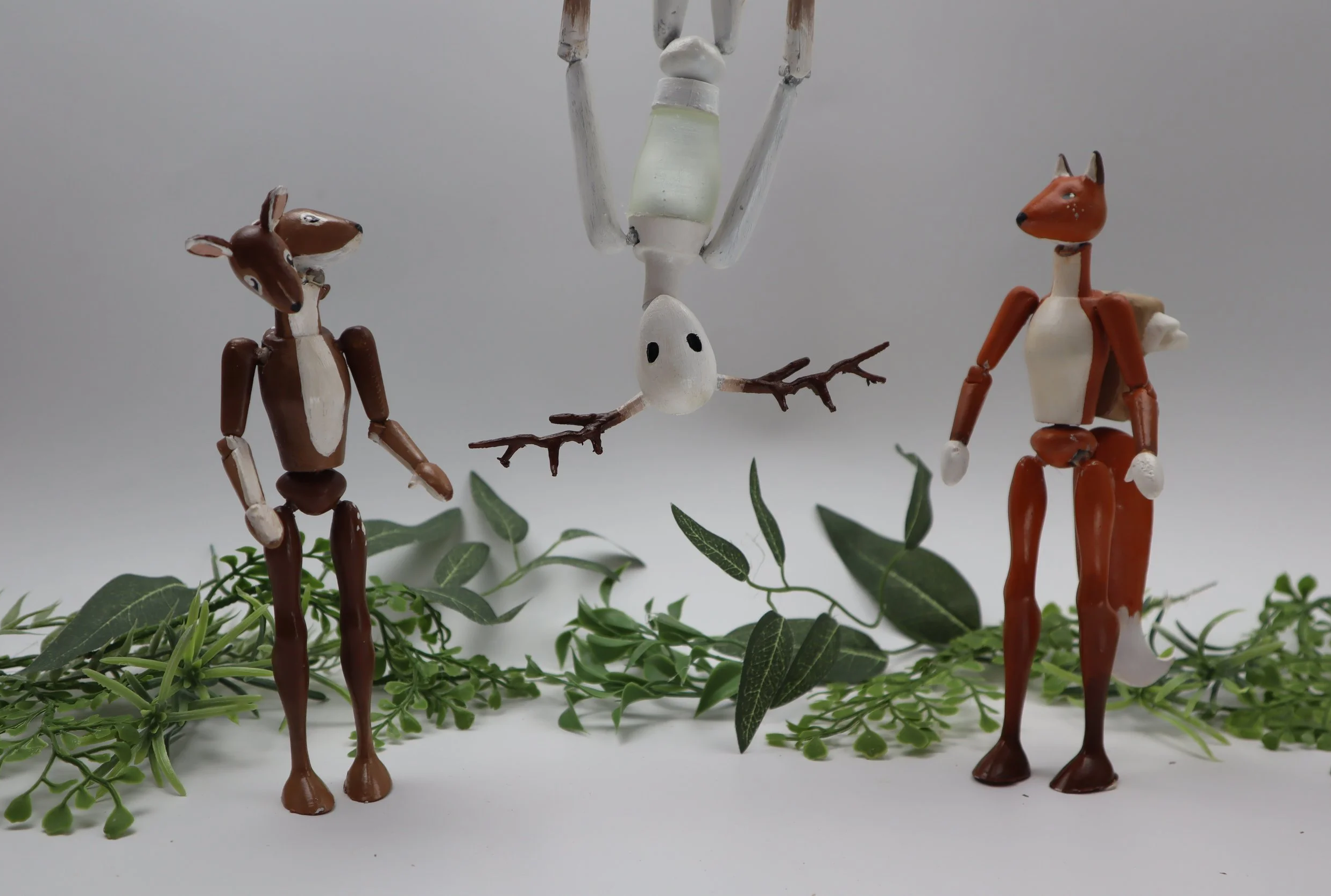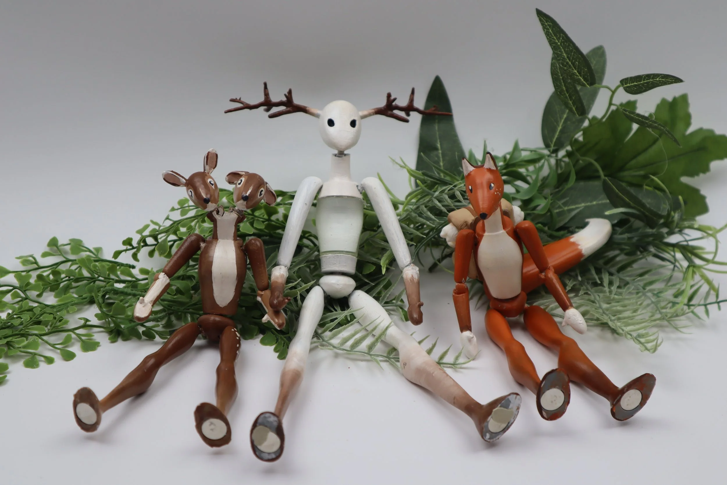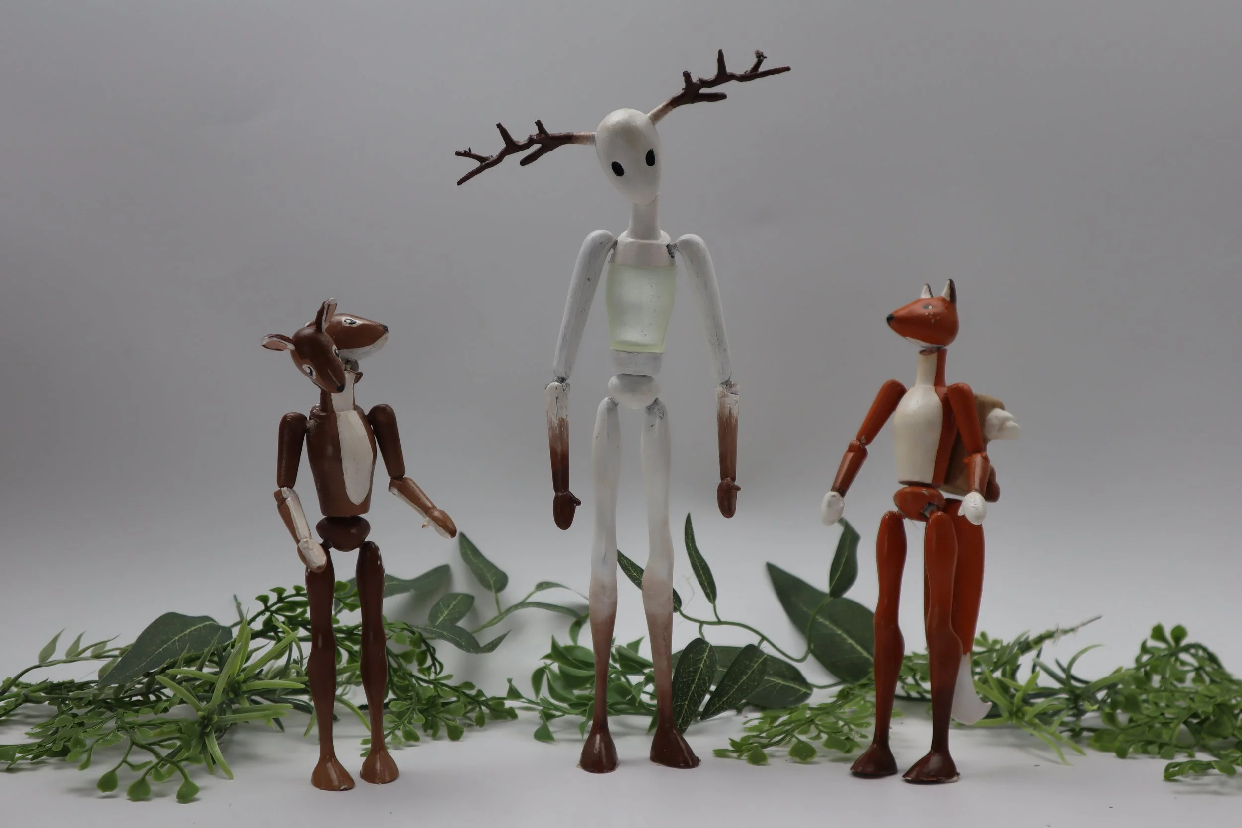 To approach this, I wanted to create figures that felt purposely odd and unconventional with a slightly eerie tone. Where a more typical set of action figures is targeted towards kids or collectors, The Hollowfolk pulls influence from folklore and is targeted more towards inquisitive enjoyers of the strange, spooky, and macabre. Each figure features a high level of articulation achieved through the use of 8 to 9 ball joints to allow for dynamic posing and compelling story-rich play.